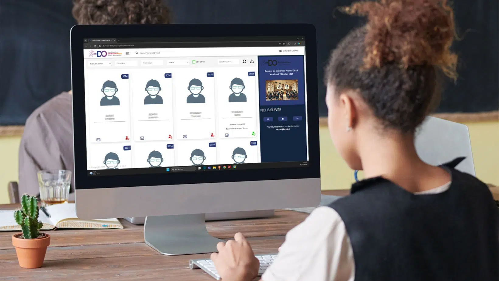 Pour une recherche de stage ou des questions sur l’orientation, les collégiens et lycéens peuvent rentrer en contact avec d’anciens élèves grâce à ce réseau interne. Pour ce projet, notre équipe a développé et intégré un intranet sur-mesure. Nous avons également envoyé un lien personnalisé à l’ensemble des élèves avec leurs codes d’accès pour se connecter à ce réseau Alumni.